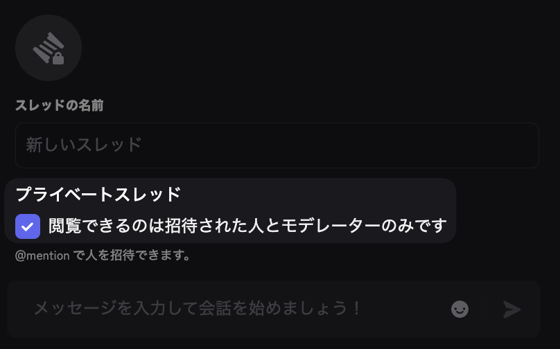 パーソナルスペース内のスレッド作成時に「閲覧できる人は招待された人とモデレーターのみです」にチェックを入れることで、スレッド内でメンションしたメンバーだけが閲覧できるスレッドを作成出来るようになりました。